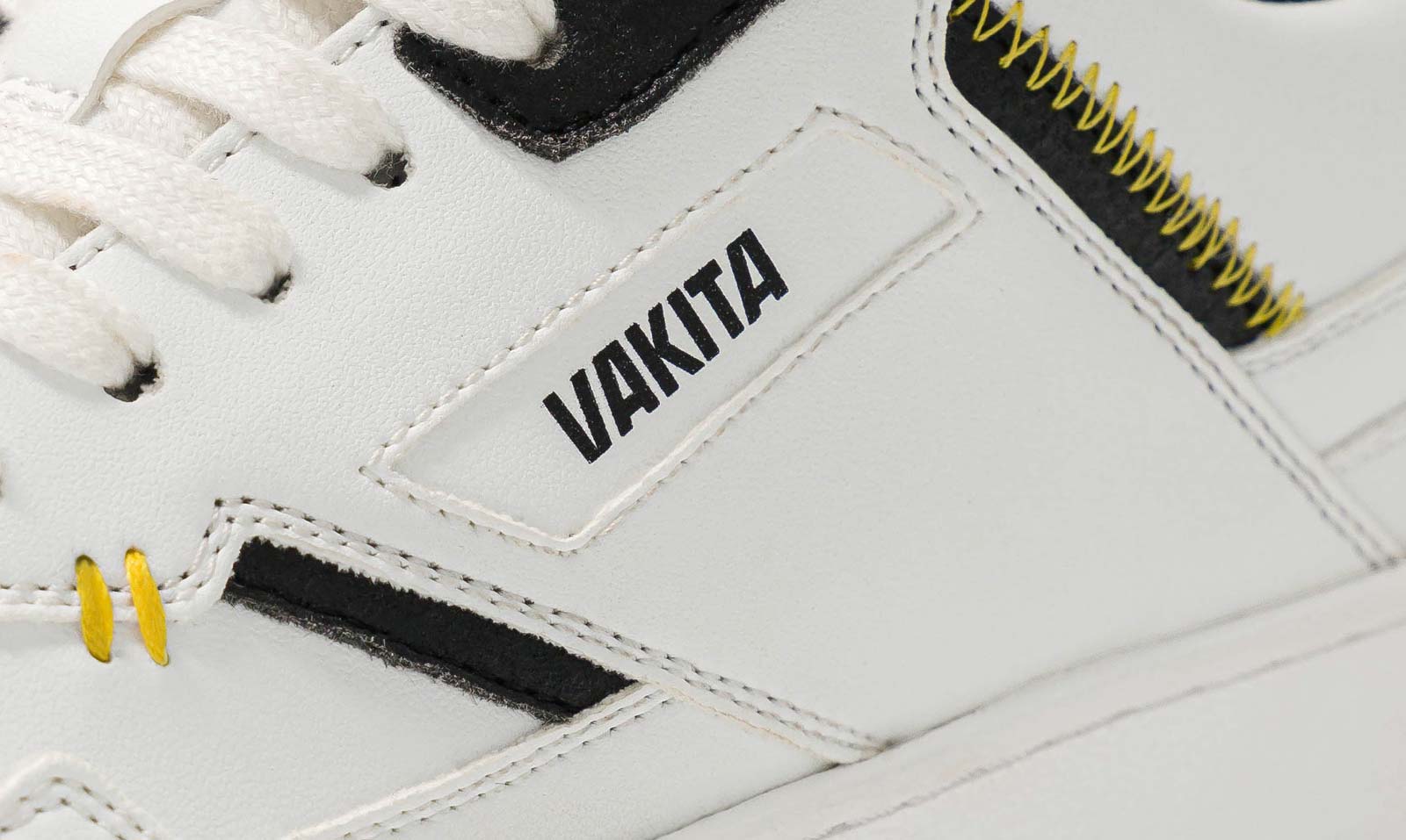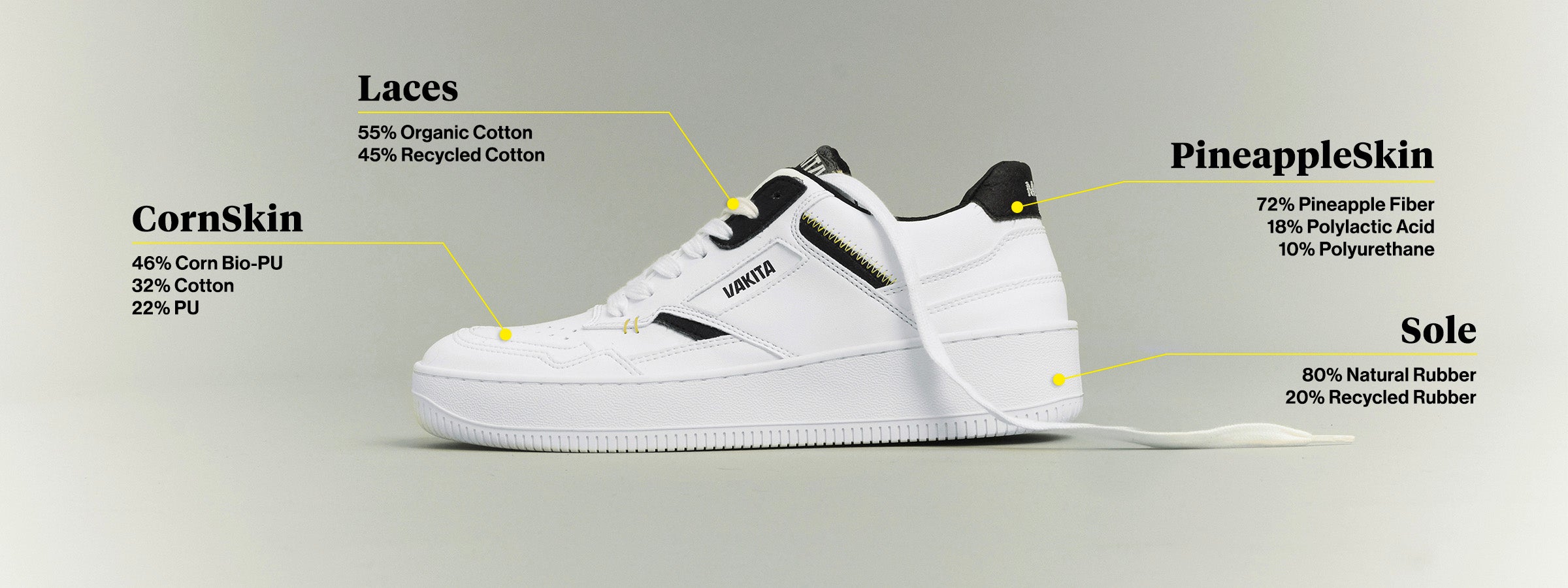 Mit Angaben zur Materialzusammensetzung des Sneakers und dem VAKITA-Logo.