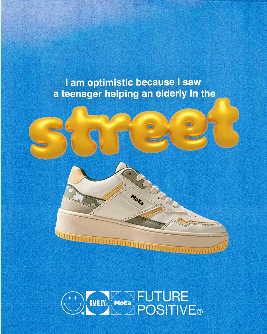 Bold patterns, contrasting textures, and harmonious shades—every detail of this sneaker was designed to embody the joy, hope, and enthusiasm we share with Smiley.
